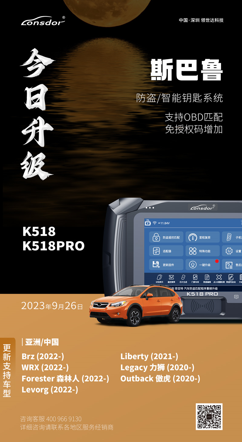 【K518系列】斯巴鲁 智能钥匙匹配程序重磅升级